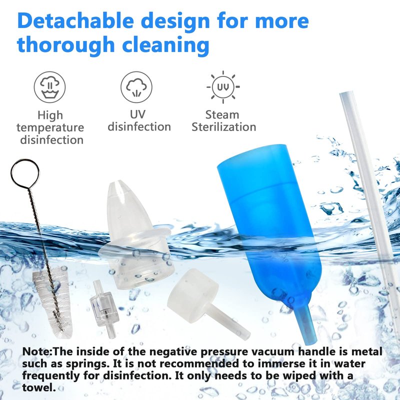 - 😊Easy to clean and reusable😊 : All parts of Yiupea's nasal aspirator are detachable, which is more convenient to clean, and has a cleaning brush to assist in cleaning. It can be scalded and disinfected with pure boiling water, and can be completely cleaned after each use