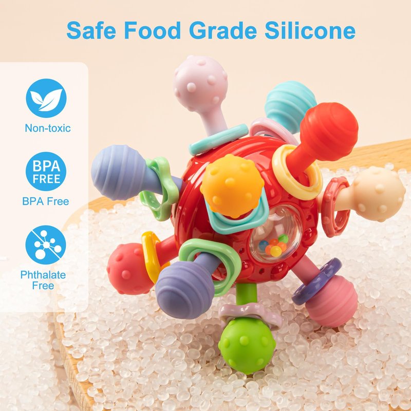 - Food Grade Toys: This baby sensory toy is made of premium food grade soft silicone and is BPA-free and phthalate-free. Sterilize baby toys by boiling in water before first use