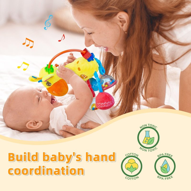 - Auditory Development: The Giraffe features a variety of sound elements, including a 15-second musical IC built into the belly,crinkly that crinkle when shaken, a squeaker in the foot, Toys for 0-6-12 months, all designed to engage baby's sense of hearing and promote auditory development.