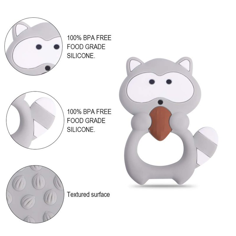 Baby Silicone Teether,Sensory Chew Toys,BPA Free Soft and Effective Infant Teething Pain Relief Toys,Freezer Safe,Food Grade Silicone,Best Shower Gift for Boys and Girls (Raccoon)