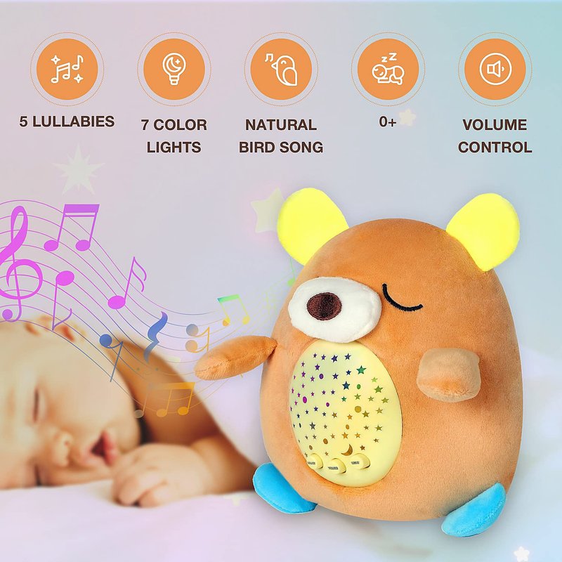 - Soother Baby Sleep - adorable bear design that your baby will love cuddling. The lullaby machine also operates as a night light soother for babies. Sleep soother will relieve anxiety even during non-sleeping hours.