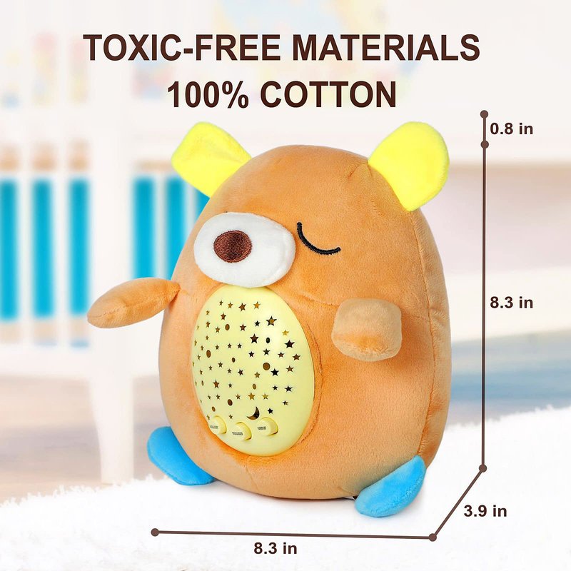 - Lullaby Stuffed Animal - our soother for baby has 5 soothing melodies, volume adjustment and 7 light modes. Switch on the starry sky to your little one and add any sound to the magic moment.