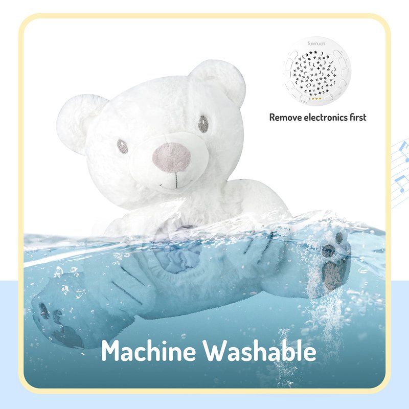 - WASHABLE DESIGN: Detachable design, in order to avoid the breeding of bacteria after long-term use of the toy, the speaker and the bear itself are detachable design, and the speaker can be cleaned after taking out the speaker, giving the baby a clean and safe company with the bear.