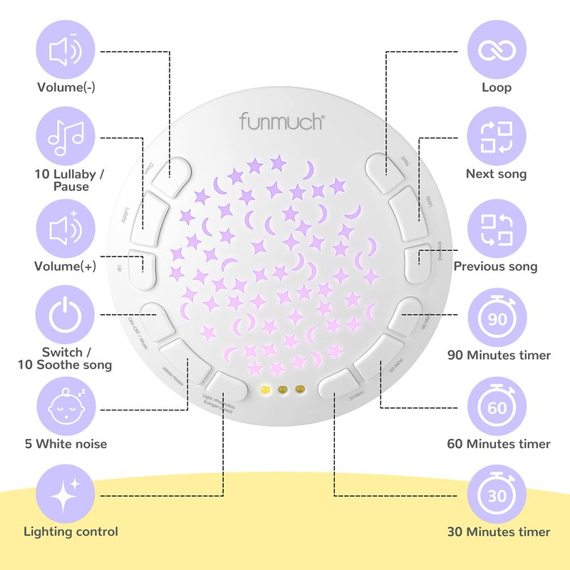 - STARRY SKY PROJECTION: Press the projection button, you can see the colorful stars and moon on the wall, the light will slowly change into different colors, which can attract the baby's attention and calm the baby to sleep.