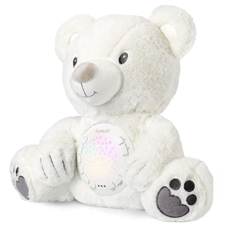Baby Sleep Soother, Mom's Heartbeat Lullabies Soothing Sounds White Noise Machine, Auto-Off Timer Night Light Projector, Unique Gifts for Babies, Stuffed Animal Toys (Polar Bear)