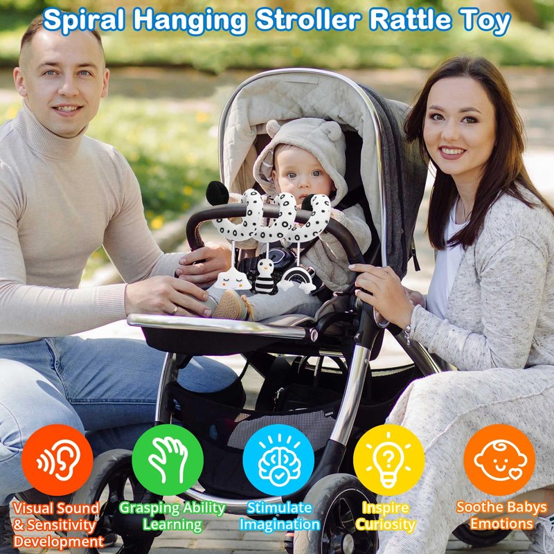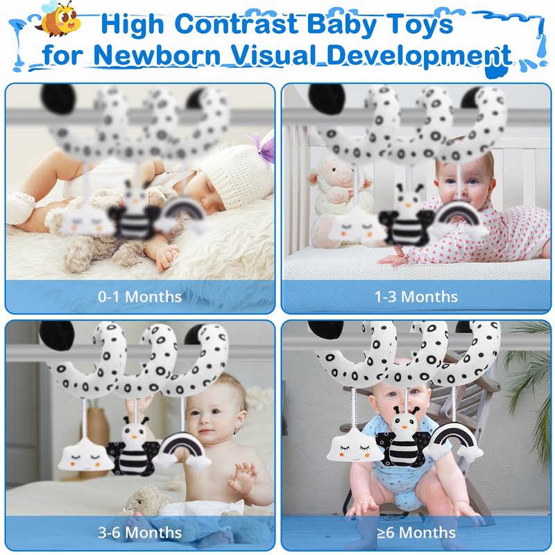 High Contrast Baby Toys Spiral Car Seat & Stroller Toys - An Early Lerning Developmental Toy for Baby 0-12 Months