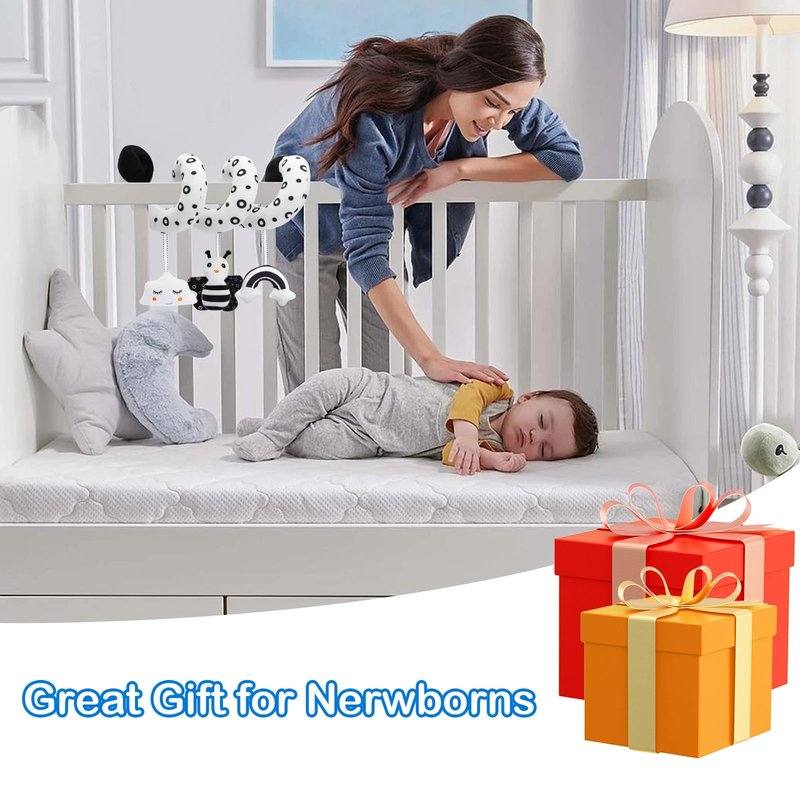 Baby Spiral Hanging Stroller and Car Seat Toys for Babies 0-6 Months Black and White High Contrast Sensory Toy Newborn Plush Activity Toys for Crib Mobile, Best Gift for 0 3 6 9 12 Months Baby