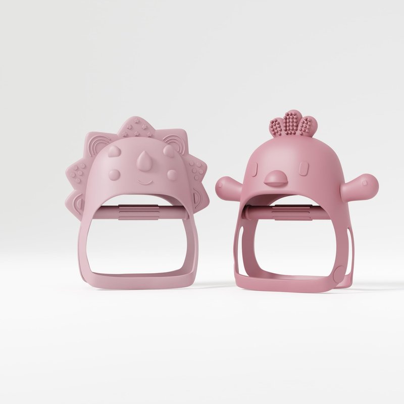 - Baby Chick Toys - Baby Hand Teether and silicone toys for babies. Dual pacifiers help your little one self sooth while the textures of the wearable teether massage and stimulate gums.