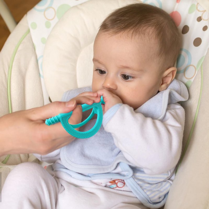- Excellent Design: This baby hand teether is ideal for younger babies with its well-thought-out grip and depth of insertion. Babies can easily hold it, and it won't slip out of their hands. The protrusions and spiral design on both ends are perfectly sized to fit in a baby's chewing