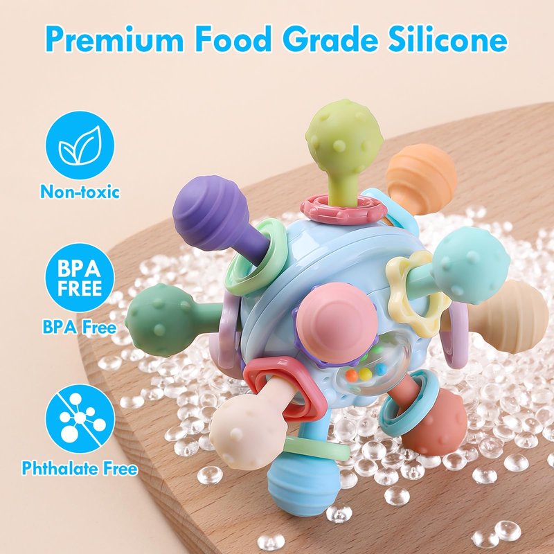 - Food Grade Baby Teether: This baby sensory toy is made of premium food grade soft silicone and is BPA-free and phthalate-free, ensures the safety of teething babies. We have carried out rigorous pull tests to ensure that no parts come loose when baby chews. The small beads are securely placed inside, baby can chews it without worry. Accompanying your baby's healthy growth!