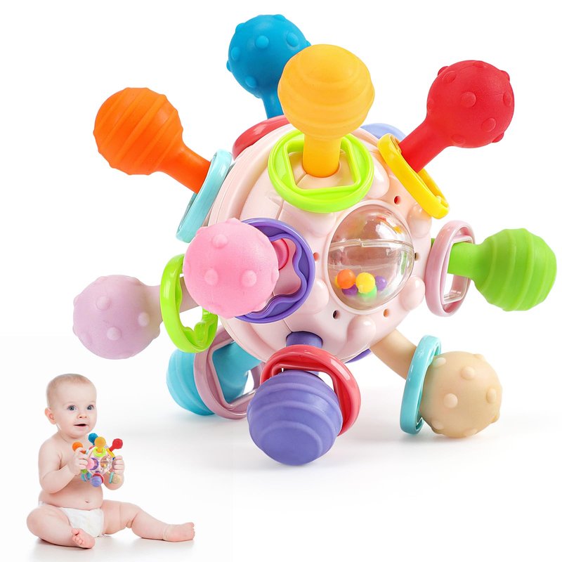 Baby Teething Toys: Infant Sensory Toys Teether Relief Rattle Toys for Babies 0 3 6 9 12 18 Months | Newborn Montessori Learning Toys | Baby Shower First Birthday Gifts for 1 2 One Year Old Girl Boy