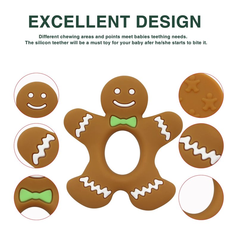 Baby Teething Toys, Silicone Teether for Babies, Soothing Teething Pain Relief, Baby Teethers Chew Toys Christmas Toys Toddlers Gift (Gingerbread Man)