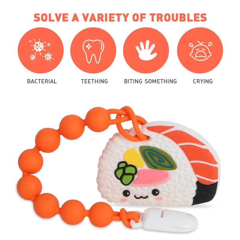 Baby Teething Toys,Food Grade Silicone Teether with One-Piece Pacifier Clip Holder,Shower Gift,Highly Effective Pain Relief for 3 Months+ Boy and Girl,BPA Free,Freezer Safe. (Sushi)
