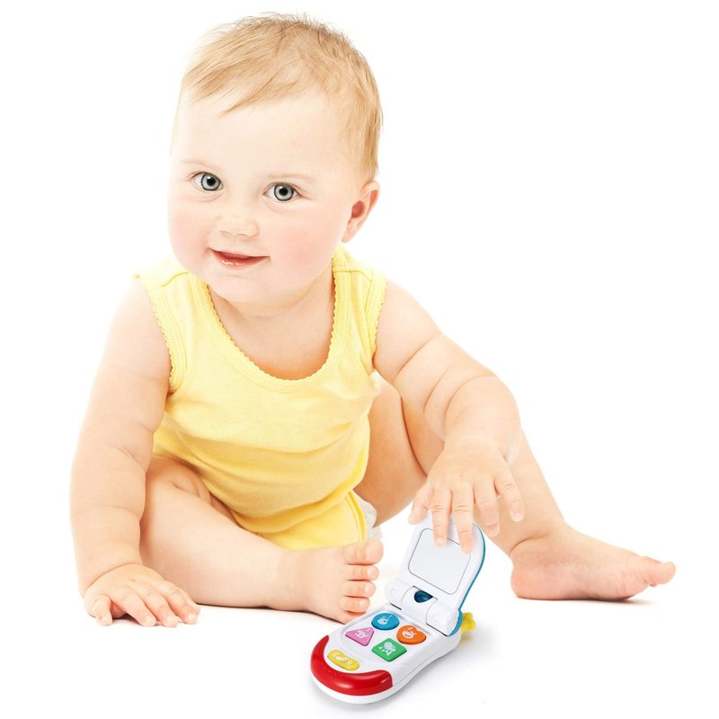 - BABY PHONE TOY – Opening easily and closing with a satisfying click, flip cell phones are the most fun to play. With a realistic ring tone and 4 other noise buttons, this play phone provides plenty to explore. Little babies will love the bright colors and safety mirror, while older kids will play more imaginatively.