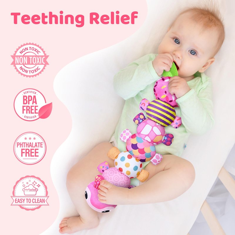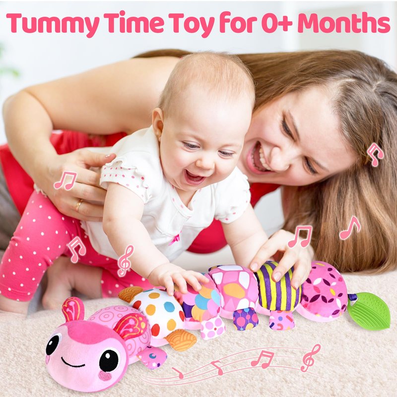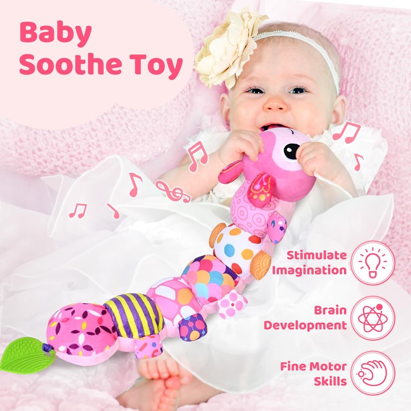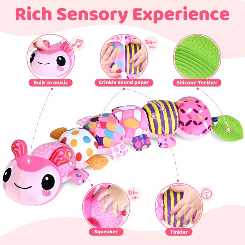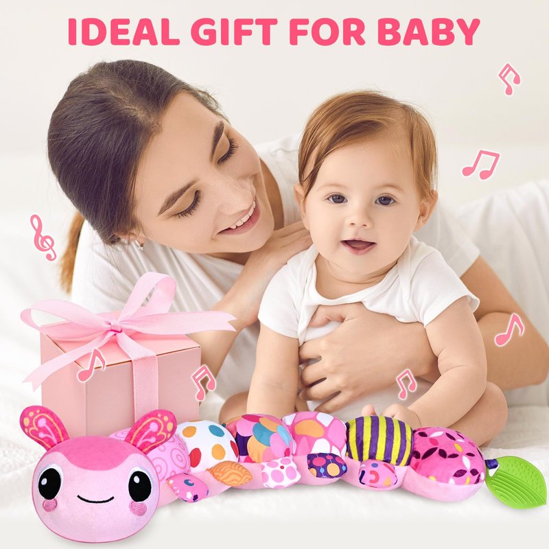 Baby Toys for 0-3-6-9-12 Months, Infant Stuffed Animal, Multi-Sensory Plush Toys, Tummy Time Musical Caterpillar Toy for Newborn, Soft Toys with Crinkle, Rattle and Textures, Birthday Gift for Girls