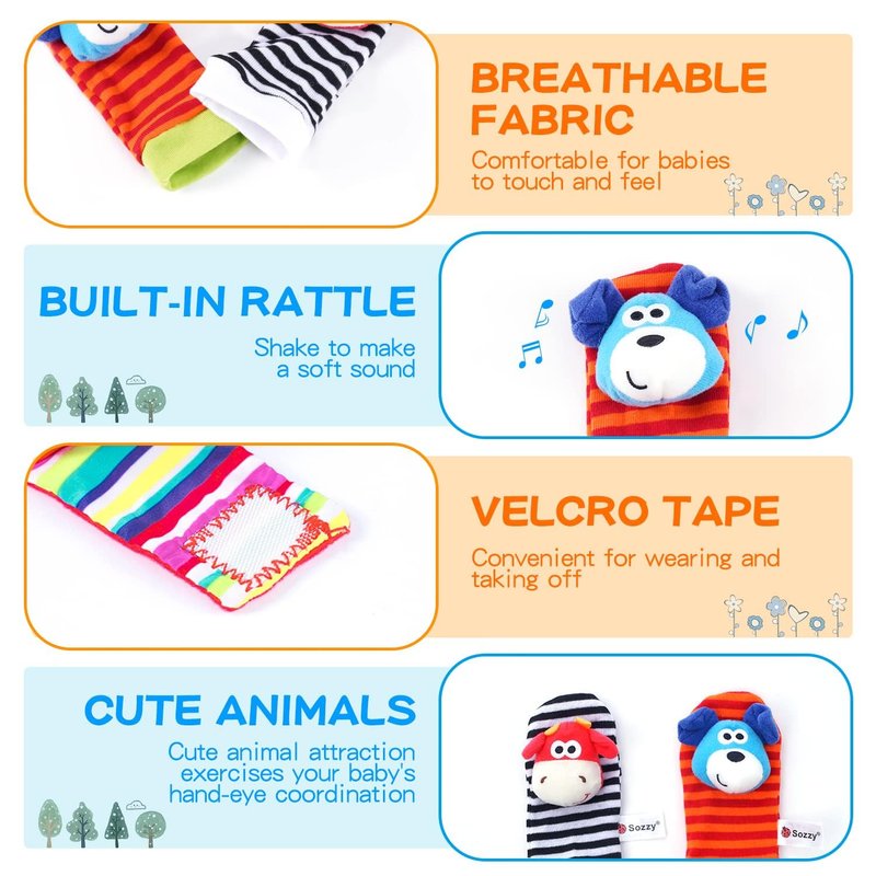 - Variety of Textures and Sounds: Featuring bright colors, fun patterns, and gentle rattling noises to stimulate baby's senses. Our top newborn baby gifts like these infant baby rattle socks for babies 0-12 months. These baby wrist and foot rattles make excellent new baby gifts for infant gifts baby sensory toys 0-3 months