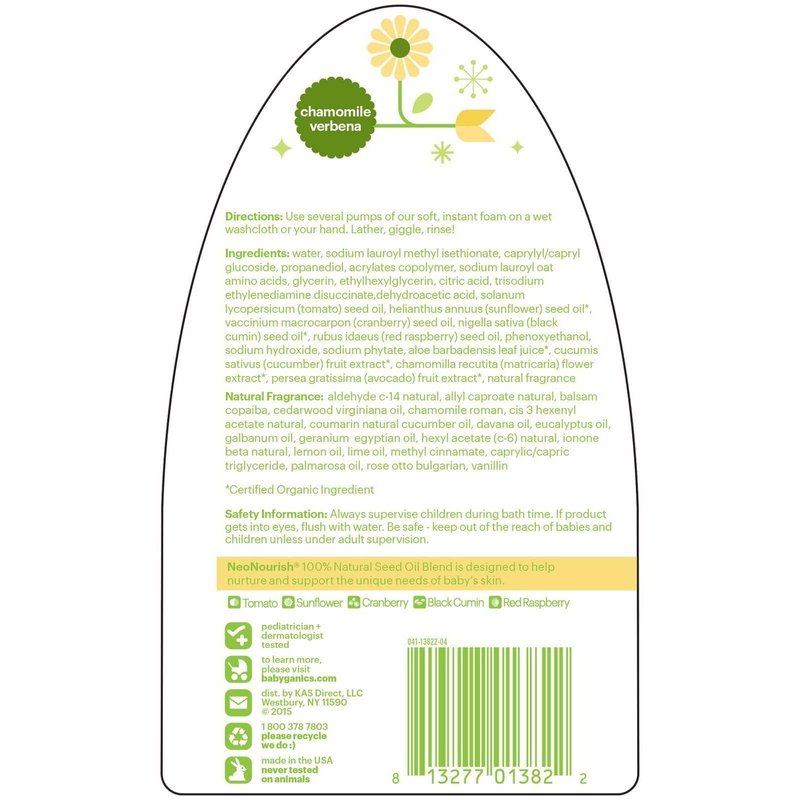 Babyganics Baby Shampoo and Body Wash, Chamomile Verbena, 16 Ounce