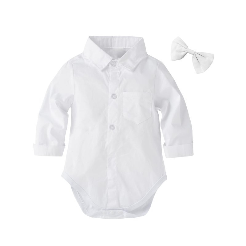 - Design:Bow tie,Turn-down collar design with 3 snaps at neckline, and 3 snaps on the crotch, convenient to change diaper for baby,suspenders strap adjustable elastic braces shorts pants. With cute and practical clothes.A best choice in summer for you little boy, perfect for party, festival, birthday, photo shoot, or daily wear;