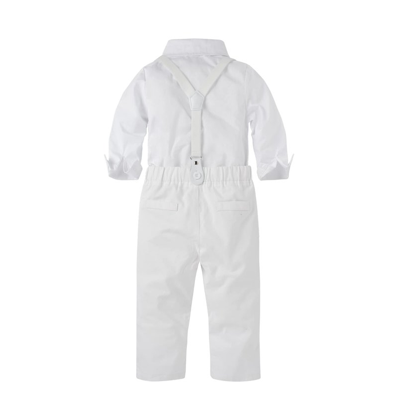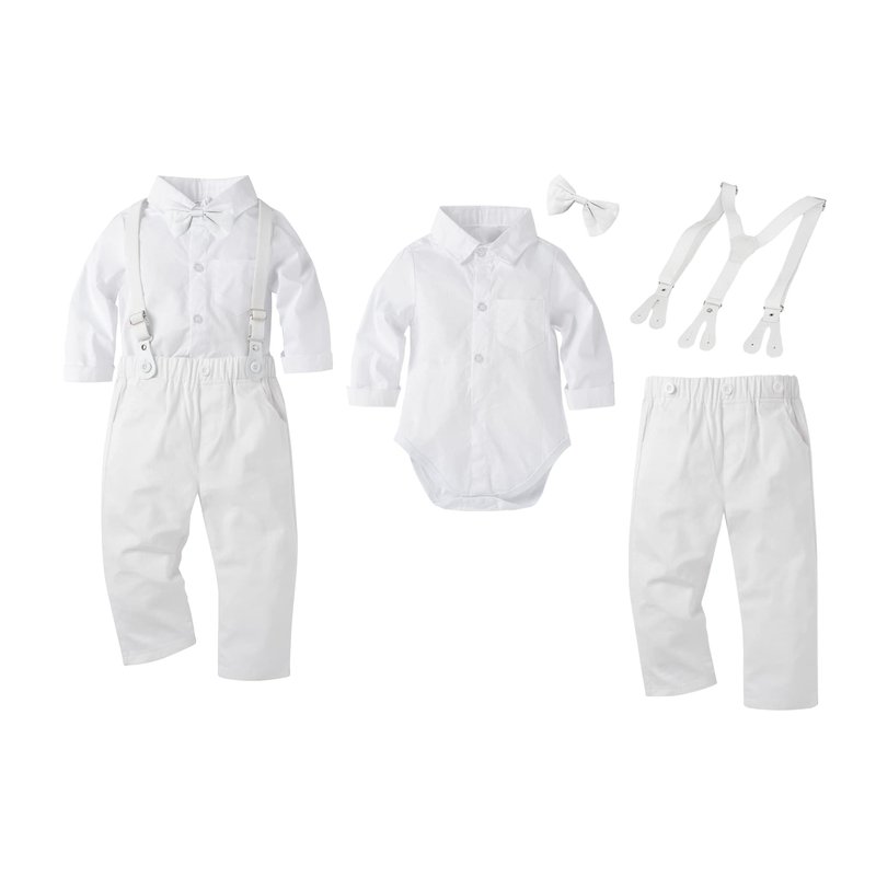 BabyMars Christening Clothes Wedding Tuxedo Outfit Baby Boys Formal Suit Gentleman Bowtie Long Sleeve Suit(White Suspenders,0-3 Months) (B2310)