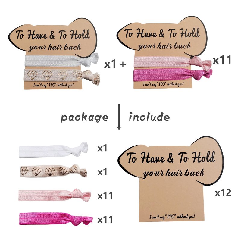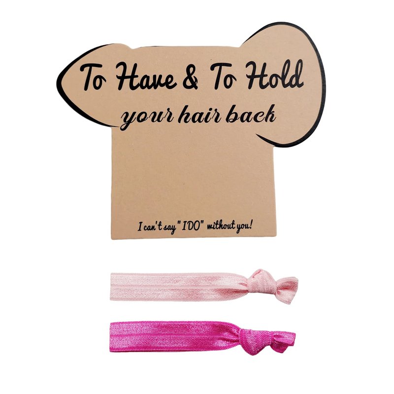 - Bachelorette Party Gift - 7 or 12 Pack to Have to Hold Your Hair Back Card Funny Shape with Hair Tie: Our bachelorette party gift is a unique and humorous choice for bridesmaid gifts. The pack includes a funny-shaped hair ties Card in a 7 or 12 pack. The hair ties come in 14 or 28 pink rose colors for the bridesmaids and white for the bride. This gift combines practicality and laughter, making it a perfect addition to any bachelorette party.