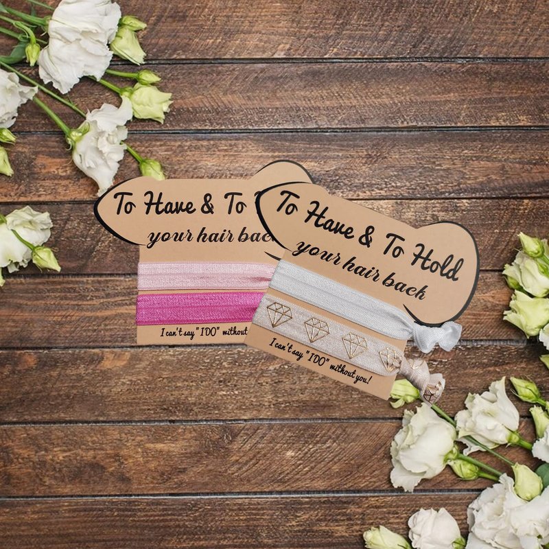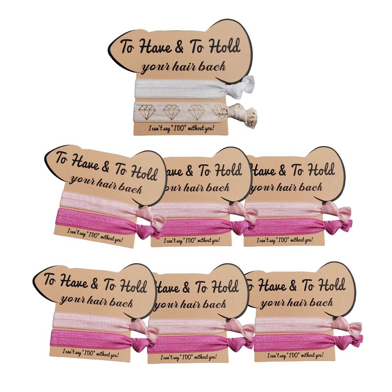 - Bachelorette Party Gift - 7 or 12 Pack to Have to Hold Your Hair Back Card Funny Shape with Hair Tie: Our bachelorette party gift is a unique and humorous choice for bridesmaid gifts. The pack includes a funny-shaped hair ties Card in a 7 or 12 pack. The hair ties come in 14 or 28 pink rose colors for the bridesmaids and white for the bride. This gift combines practicality and laughter, making it a perfect addition to any bachelorette party.