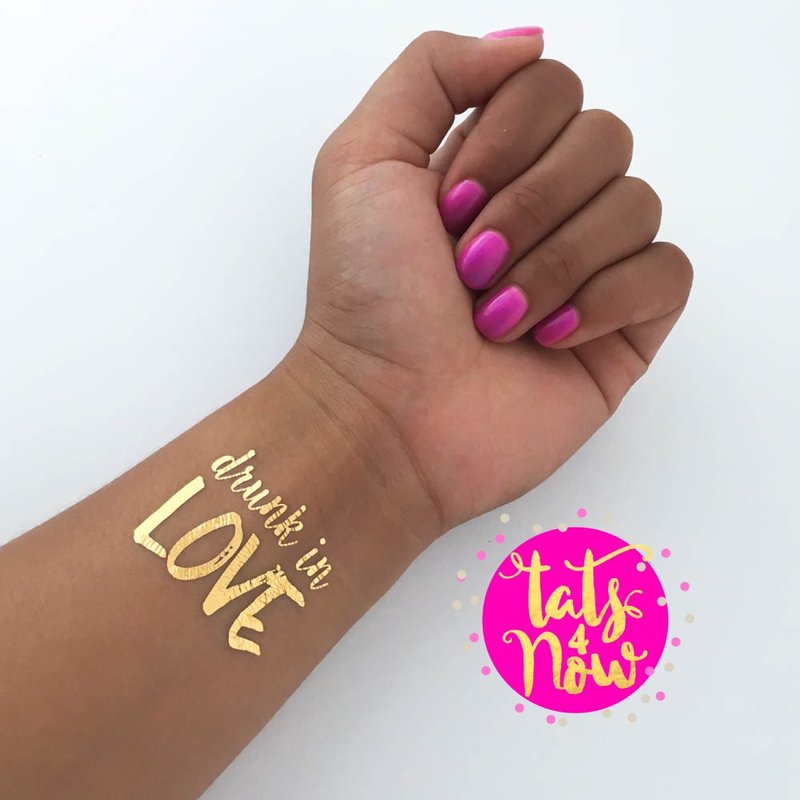 Bachelorette party favors - Drunk in LOVE, bridal party, bridesmaid tattoo, bride, hens party, wedding party, SET OF 12 gold tattoos