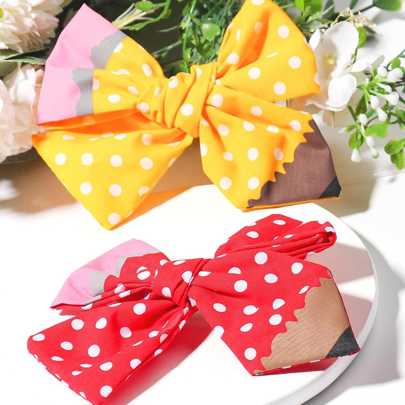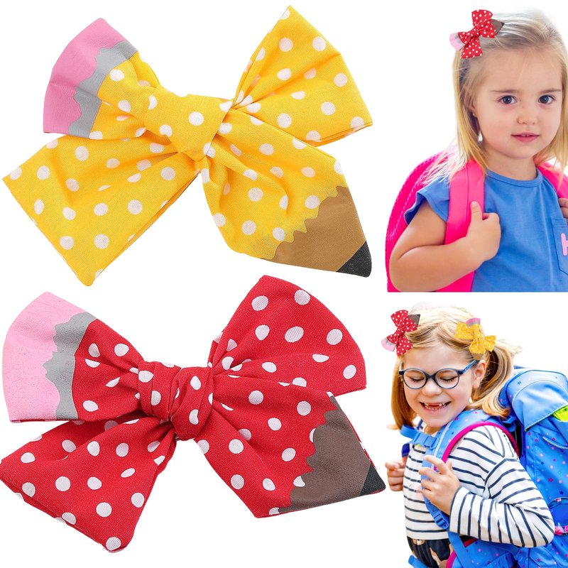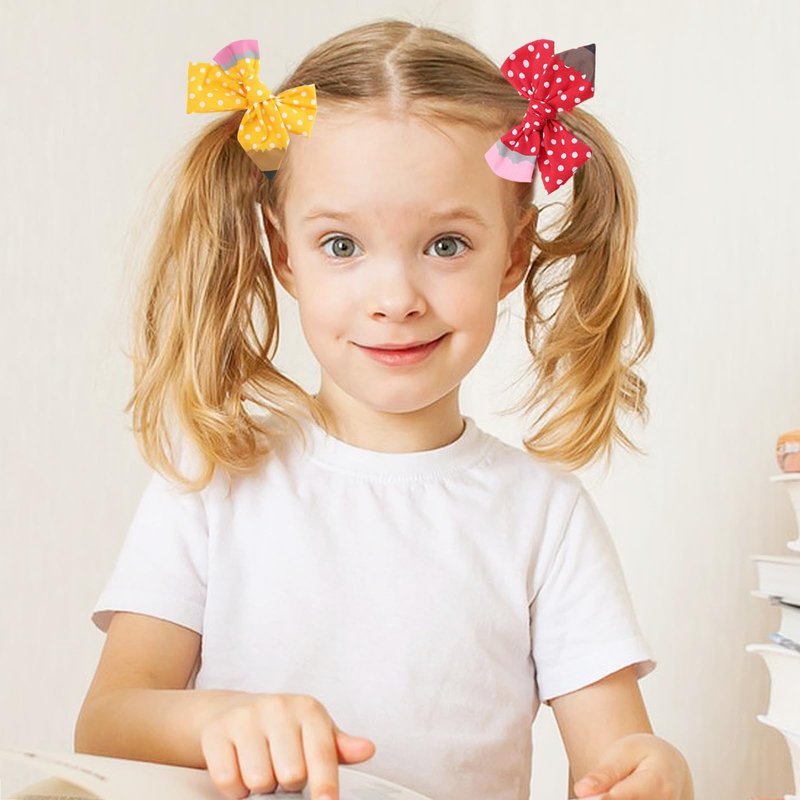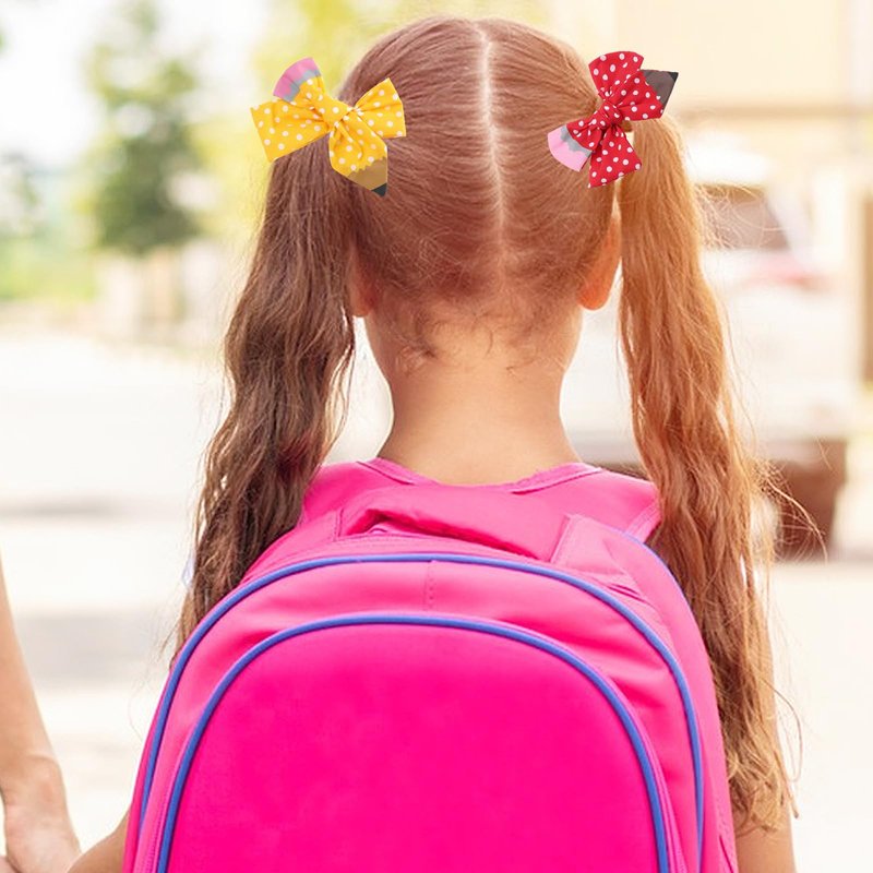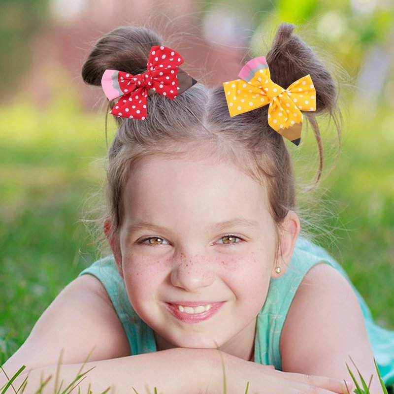 - [Hair Bows Clips Design] The pencil cheer hair bows hair accessories are designed wave point. The back to school season bow colors of this butterfly hairpin are yellow and red.