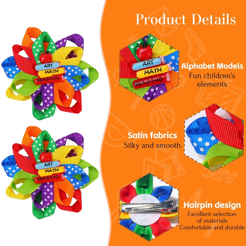 - 𝐁𝐚𝐜𝐤 𝐭𝐨 𝐒𝐜𝐡𝐨𝐨𝐥:2 back to school bow hair clips, measuring approximately 2.8x2.8 inches. If teachers and students wear the same hair clip, it will promote the relationship between teachers and students, making the classroom more joyful