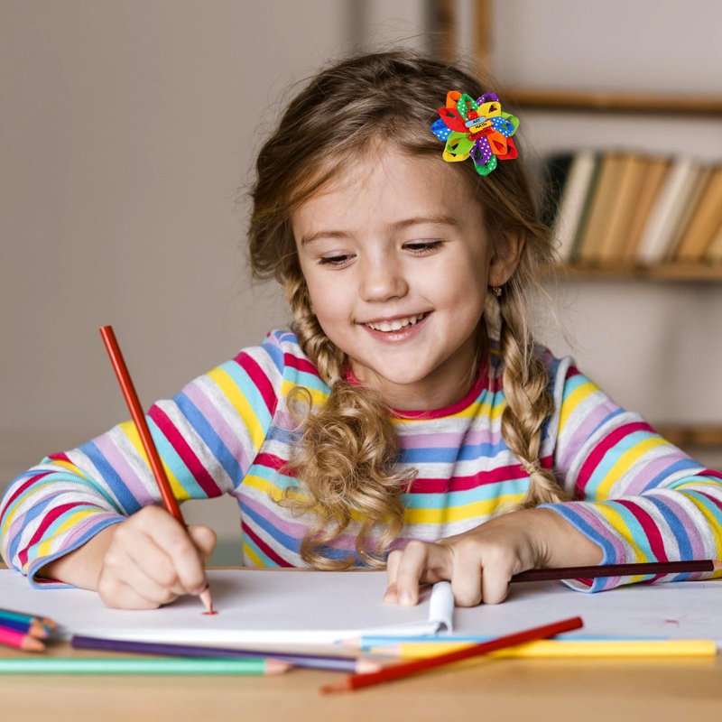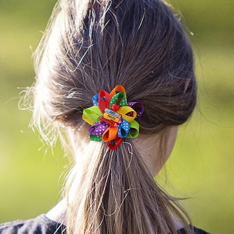 - 𝐂𝐨𝐥𝐨𝐫𝐟𝐮𝐥 𝐅𝐥𝐨𝐰𝐞𝐫 𝐃𝐞𝐬𝐢𝐠𝐧: This hair clip features a colorful ribbon design, with bright and bright colors. It also features cute books, apples, and white polka dots, making it look more delicate and cute.