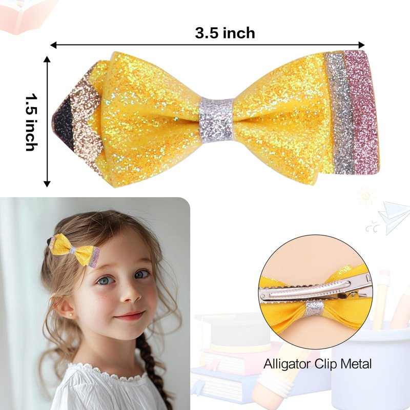 🌟 Cute Glitter School Hair Bow Pencil Hair Clips for Girls! Make Yor Pretty Girls Stand Out in Back to School Season.