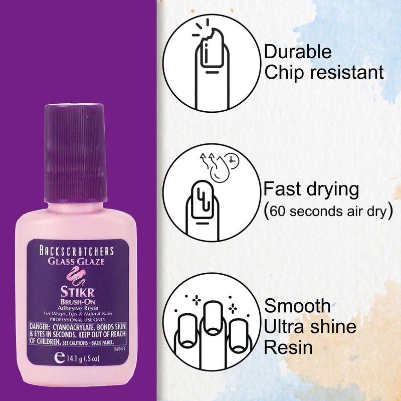 Backscratchers Extreme Glass Glaze Stikr Adhesive Resin - Strong Adhesive for Nail Wraps, Nail Tips, Nail Extensions, Charms, and on Natural Nails - Nail Silk Wrap and Fiberglass Glue