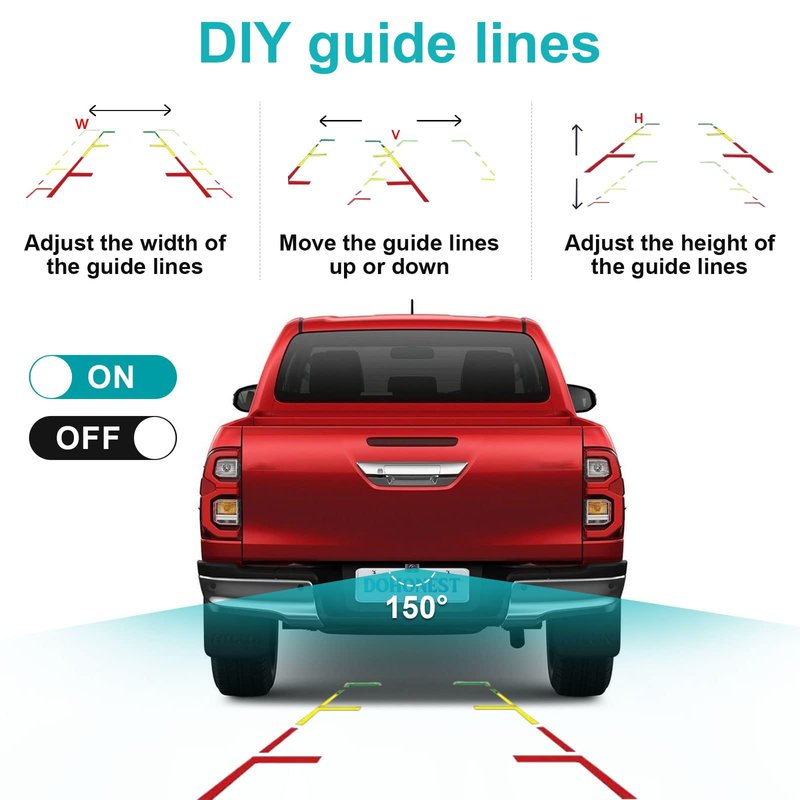 - [ DIY Guidelines ]: The backup cameras for vehicles can adjust the guidelines both vertically and horizontally in terms of width and narrowness to suit the camera's installation location, ensuring precise reversing security.