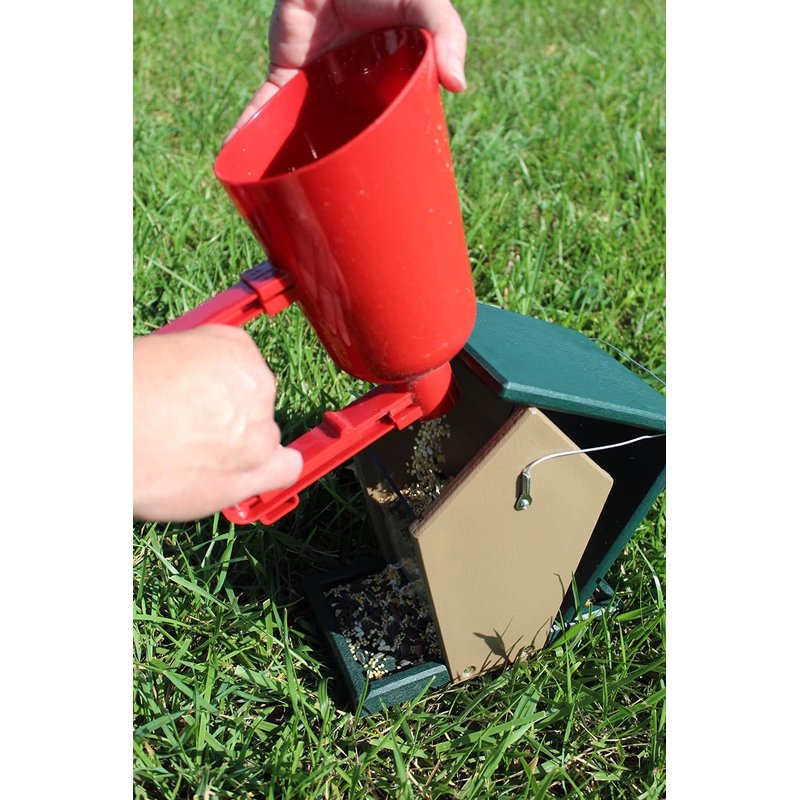 - Funnel Shape Fits Any Seed and Fills Any Feeder. Hold Your Feeder with One Hand While Holding the Scoop with the Other.