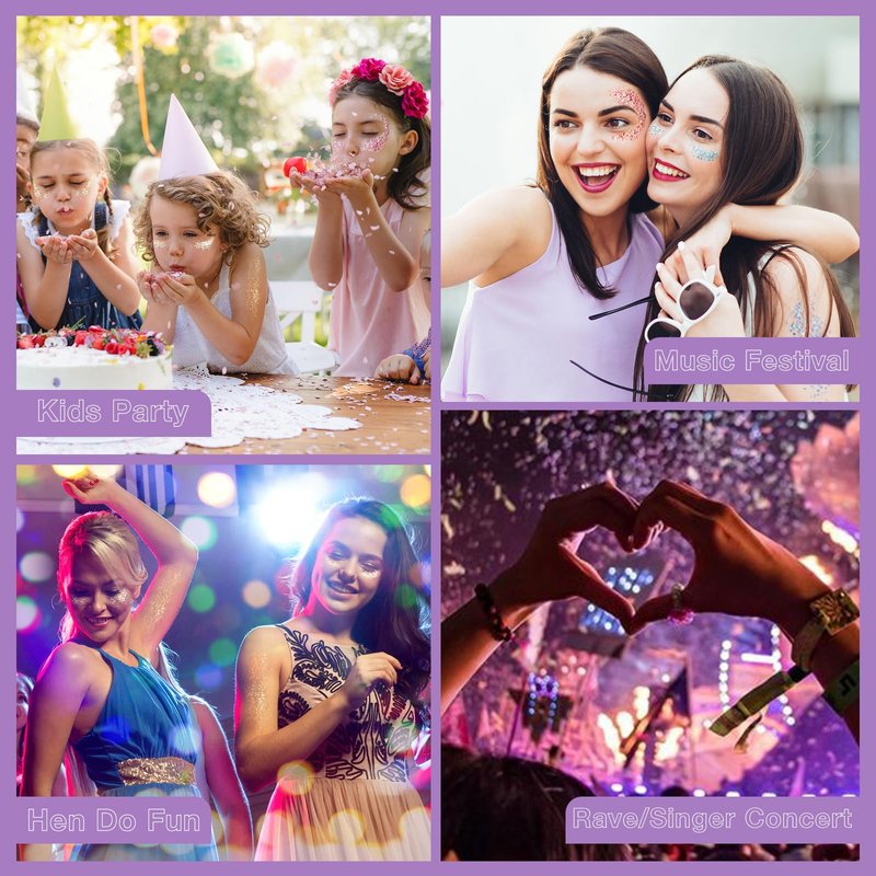 - ✨Multiple Uses - Dry fine glitters can be use around eyes, on lips, face, hair, nails, collarbones, shoulders and other body parts. You can use this to do DIY art craft. Like phone cases and tumblers, resin. Perfect for various occasions such as rave outfit accessories. banquets, weddings, singer concert,parties, celebrations,performances, carnivals stages, bars, dating, wedding, ball, HALLOWEEN, costume, slime paint, or daily makeups and other venues for a super glittering effect.