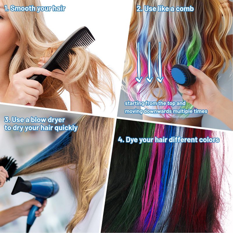 - Fun and Easy: Our temporary hair chalk for kids is designed to be mess-free and easy to use. Simply color your child's hair with the provided hair chalk combs, and watch their imagination come to life. NOTICE: Not work for short hair. Not work for deep color hair, Not work for hair roots.