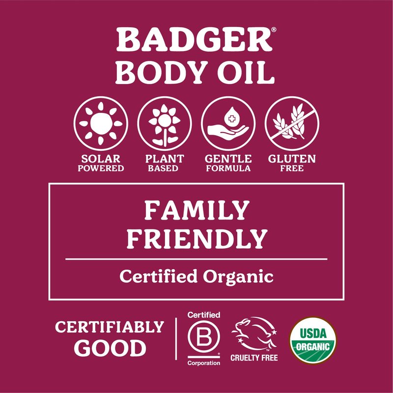 - ORGANIC BODY OIL - For anyone wanting soft, supple skin. If the purpose of a lotion or cream is to deliver oil to the skin, body oils make a lot of sense! Gentle, soothing, and nourishing, Badger Body Oils are made from simple, whole, organic plant oils, so theyÕre antioxidant rich, good for your skin, and suitable for all skin types.