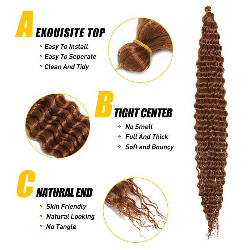 Crochet Hair Water Wave Bundles Color: Many Colors are Available: #1B,#4, #27, #30, #613, T1B/27, T1B/30, T4/30,T1B/613,T530/613,T271613,T30/Pink