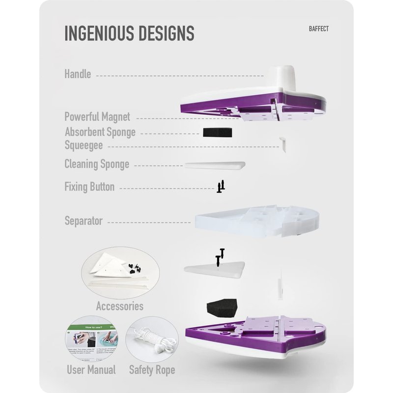 - 【Magnetic Window Cleaner】With strong double-sided magnetic design, this magnetic window cleaner enables you to clean your windows without risking standing at the window, the best tool for cleaning high-rise glass. This cleaner is specially for 18-30mm thickness window, so the magnetism is strong enough to make sure it doesn’t fall easily.