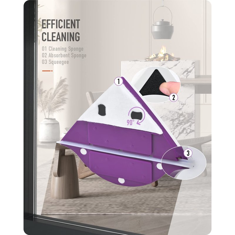 - 【Unique Modern Design】The triangular-designed magnetic glass cleaner can wipe to the narrow areas on the window without dead corners. The built-in water storage sponge is easy to use and can be used for a long time, avoiding repetitive water replenishment. And the cleaning sponges, cleaning wipers and fixed buttons can be replaced.
