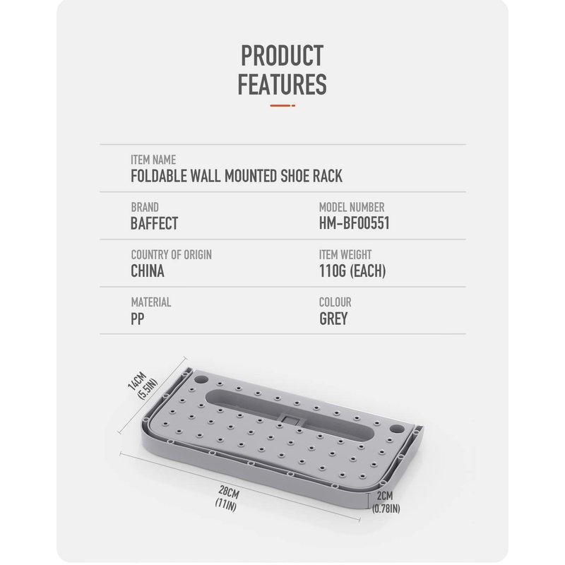 Baffect Hanging Shoe Organizer 4 pieces,Shoe Holder Foldable Wall Mounted Shoe Rack Hanging Shelf for Shoes Storage Rack Wall Shelf for Shoes (Gray)
