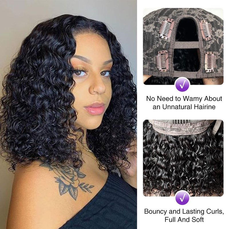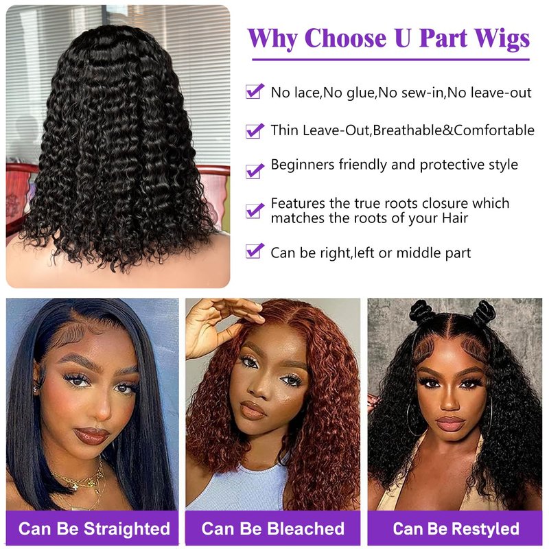 - 【Why Curly U Part Wig Human Hair】Glueless human hair wigs ready to go,Needn’t skill needed. It’s a lifesaver on busy days, gym days and unexpected meetings.