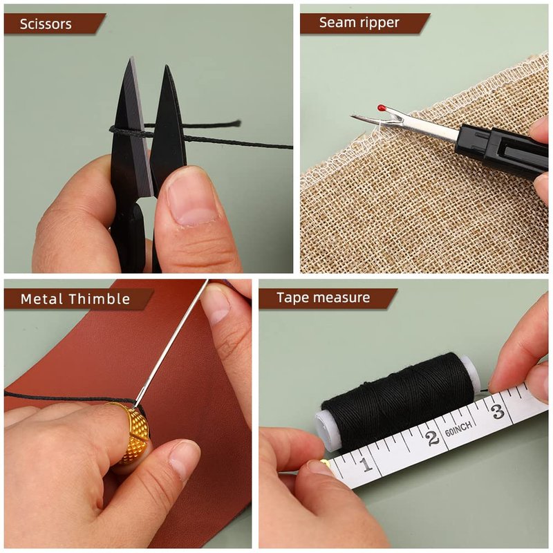 - Perfect Leather Sewing Kit: This fully-packed sewing kit contains all the necessary tools to sew for most of your sewing needs. You will get: 25* Leather Sewing Needle, 1* Inch Ruler, 1* Scissors, 1* Thimble, 3* Leather Sewing Awl, 2* Seam Sewing Ripper, 1* Threader, 12* Sewing Thread.