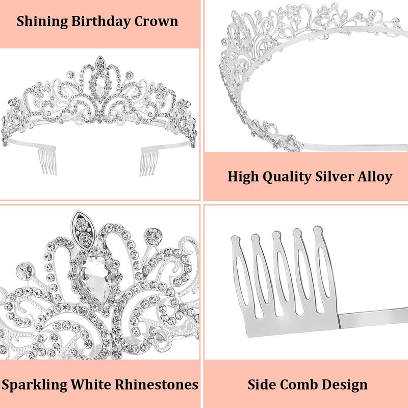 - Silver Rhinestone Tiara: Beautiful crown is made of quality alloy metal and crystals, durable and comfortable to wear. The tiara is in 5.51 inch diameter and 1.77 inch high. You can dance with it all night without feeling uncomfortable