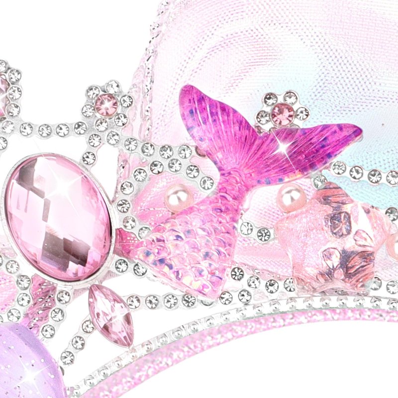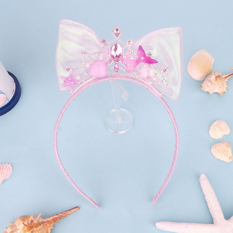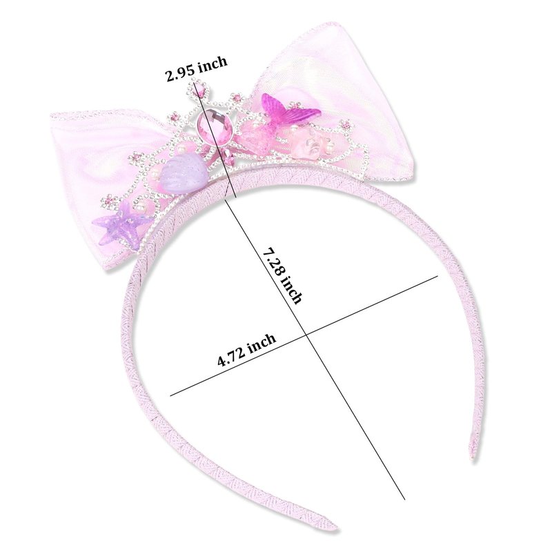 BAHABY Birthday Princess Party Decorations Mermaid Crown Pink Bow Headband Little Mermaid Costume Rhinestone Hair Accessories for Girls