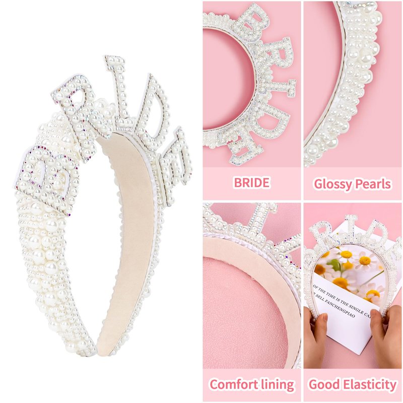- Unique Design: Our wedding headband is applied with white pearls on the padded top and the word “BRIDE” adorned with pearls and rhinestones, which can make the bride headband more bright and shiny