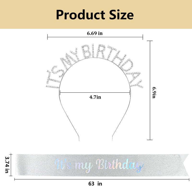 - The Perfect Birthday Party Kit: Perfect combination of “It's My Birthday” sash and headband. It will makes you amazing and being the center of attention wherever you are
