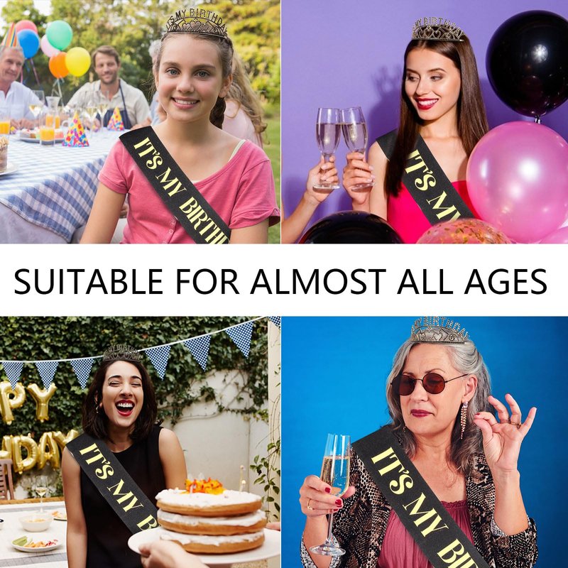 - The Perfect Birthday Party Kit: Perfect combination of “It's my Birthday” sash and rhinestone tiara. It will makes you amazing and being the center of attention wherever you are