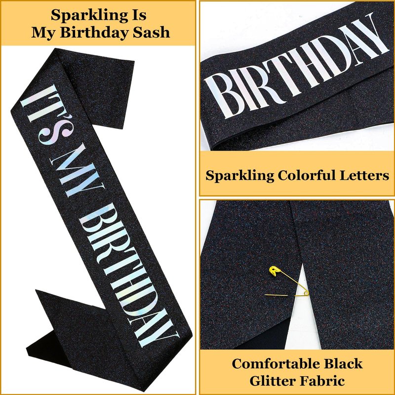 - IT'S MY BIRTHDAY Sash: Made of high quality black glitter cloth and printed with colorful words reads “IT'S MY BIRTHDAY”, cute and gorgeous! The sash is in 63 inch length and 3.74 inch width, suitable for almost everyone