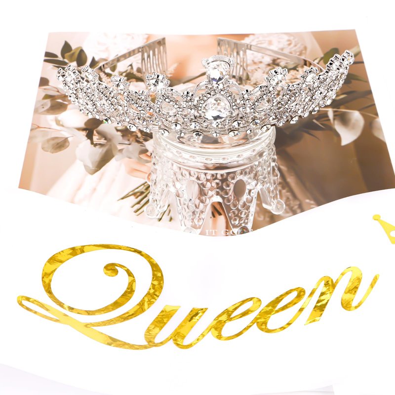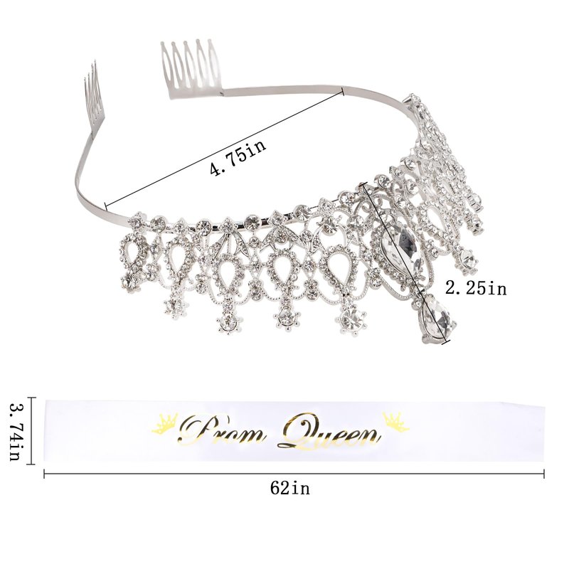 - Package Includes: One "Prom Queen" satin sash, one beautiful silver rhinestone crown. It will makes you amazing and being the center of attention wherever you are