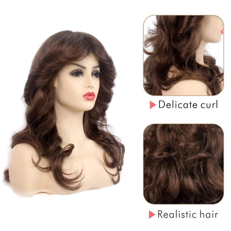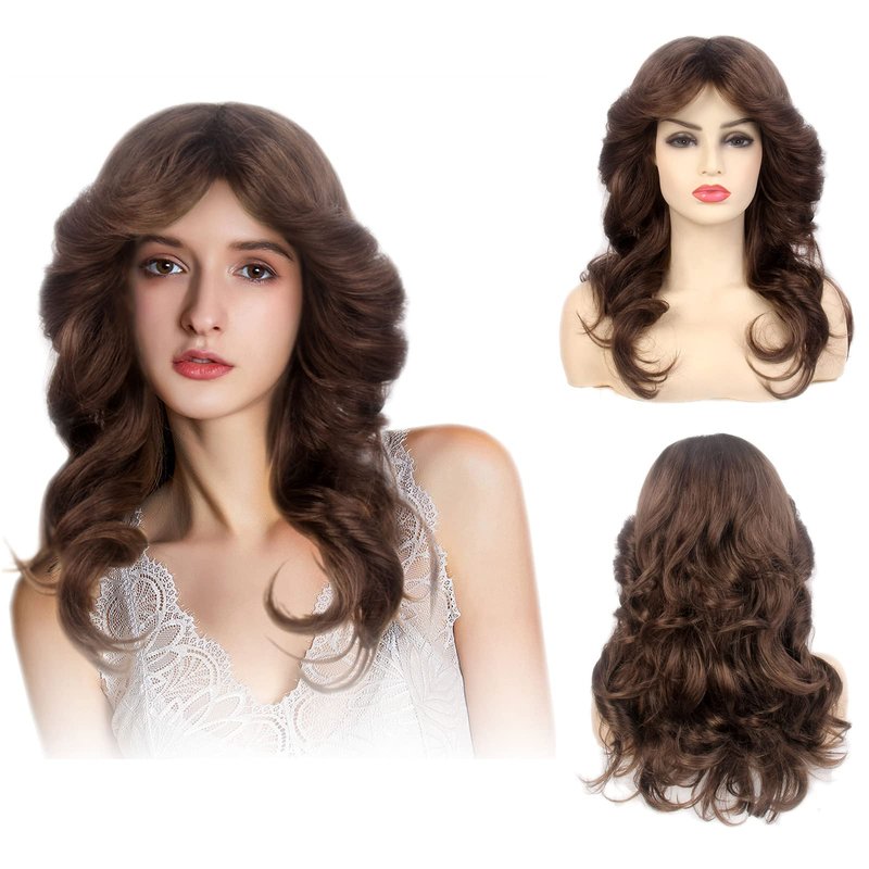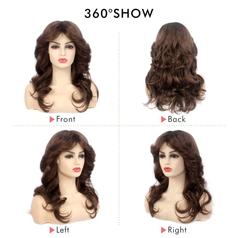 Baiansyy Disco Wigs 70's for Women Farrah Fawcett Wig 70th Wig Brown Natural Synthetic Hair Full Wigs Halloween Retro Cosplay Party or Daily life Costume Wig
